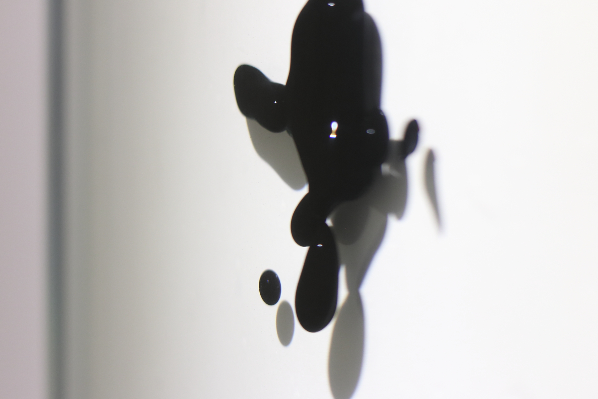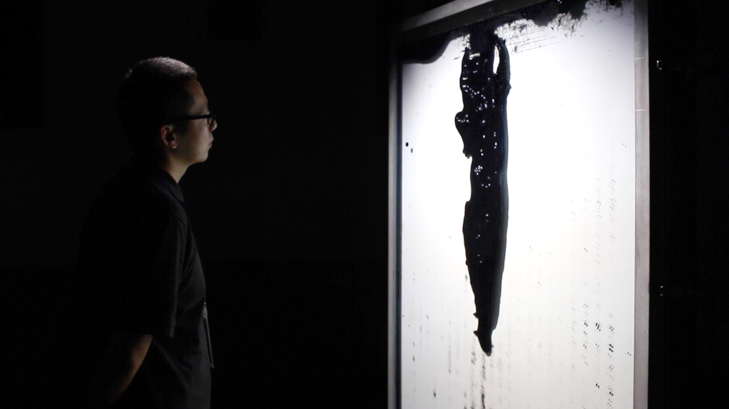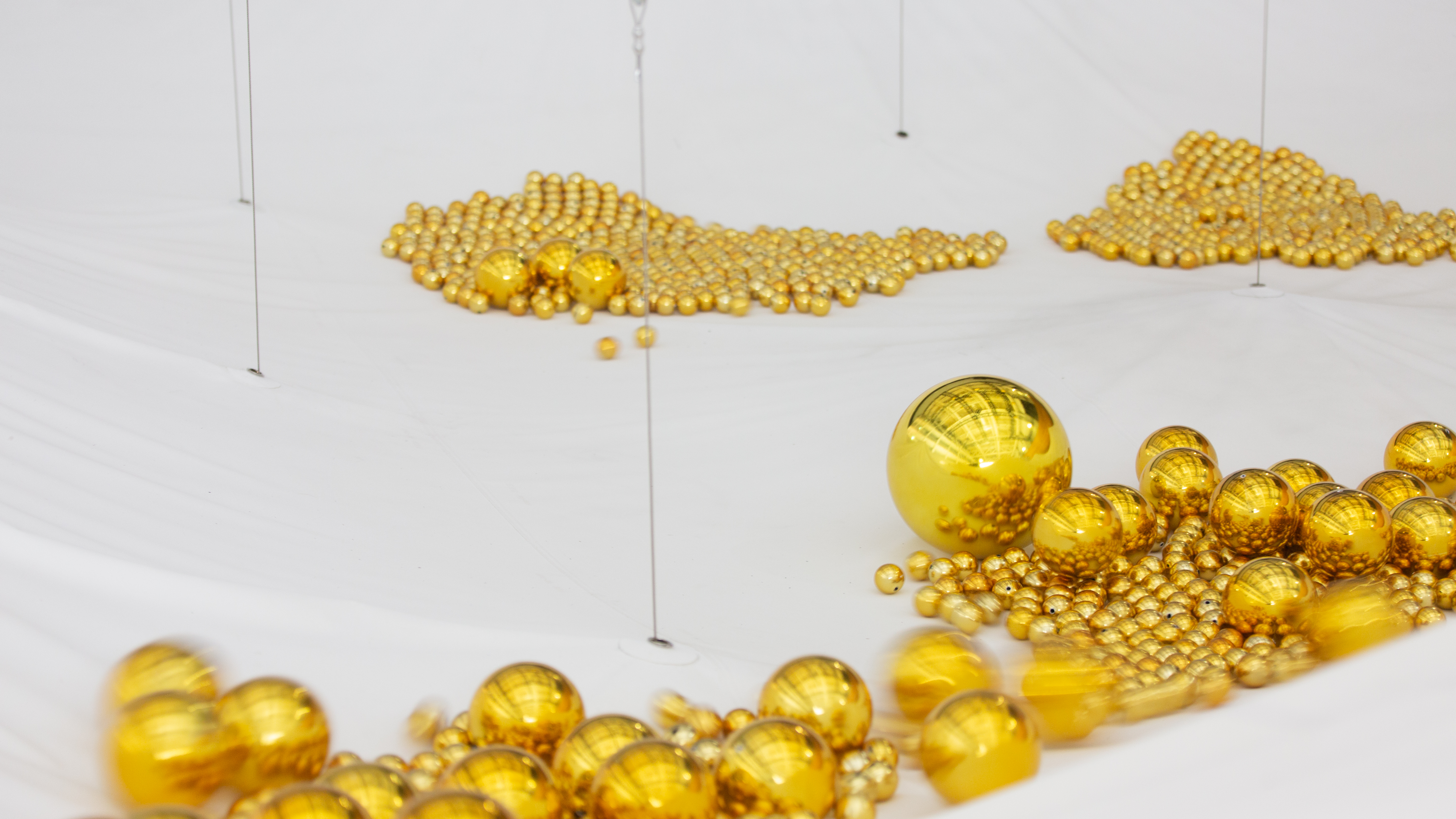 〈The Will to Gravity v2.0 Type B〉 is an installation project, closely connecting golden mass and clear fluid on a white curtain. The fluid either flows on the surface or creates a new arrangement by sticking to the mass. The golden mass, with a sense of volume, amplifies the sense of weight, and the fluid, movement centering on the mass, expresses the mobility of power. The golden masses move up and down from their position, grazing and splitting liquids. The movement under the surface causes the mobility of fluid on the surface so that the power is distributed and shared. Jung Dakd amplifies sensory experience of the space by moving the center while maintaining the balance of power. Aspects of ingredients changed by the external environment capture the landscape and daily lives around us. Through this project, he explores the uniqueness and properties of objects from the relationships between ingredients and reveals the cooperative coexistence in society by combining fluids.